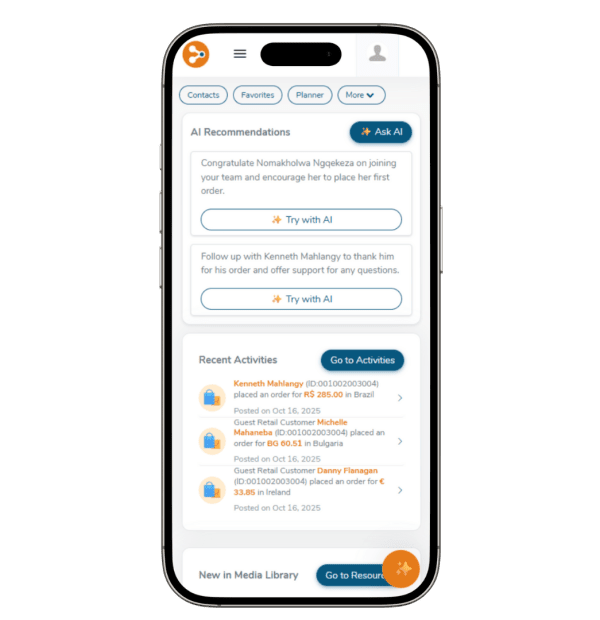 Help distributors stay engaged with the people who matter most. The AI Assistant highlights warm prospects, recommends timely next steps, and gives practical guidance on what to say or share.